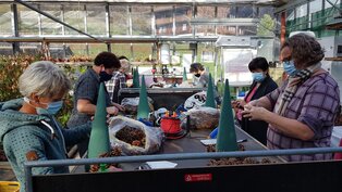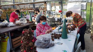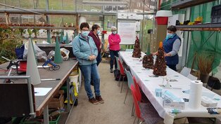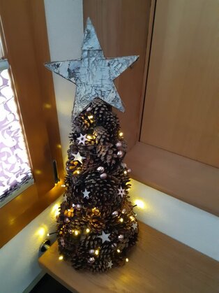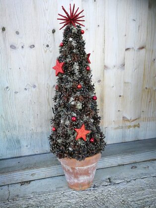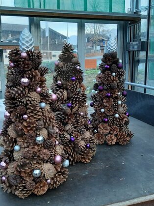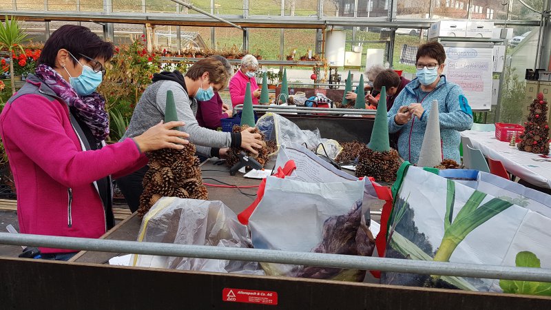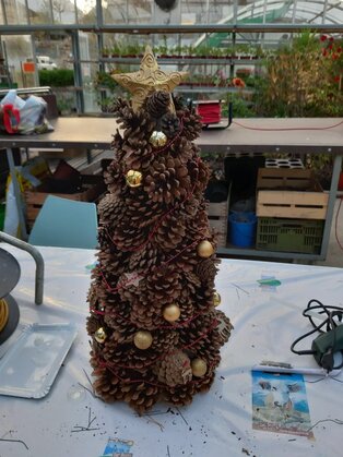 Runde um Runde endstanden schöne Zapfenbäume. Unsere fachkundige Kursleiterin Christine immer mit Rat zur Seite.